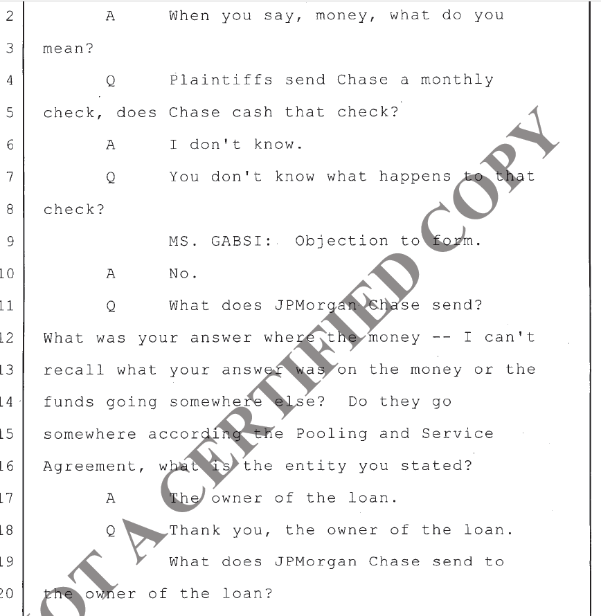 Here’s the testimony of two Chase witnesses who were deposed prior to this Order. First, we have Chase in-house counsel Matthew Dudas: